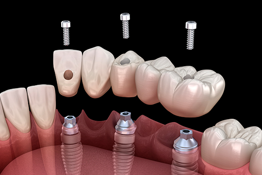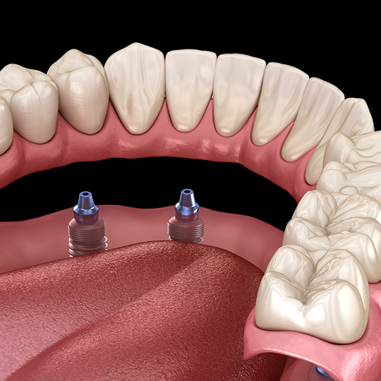 약 2~4개 정도의 임플란트 식립 후 고정 장치로 연결 |
