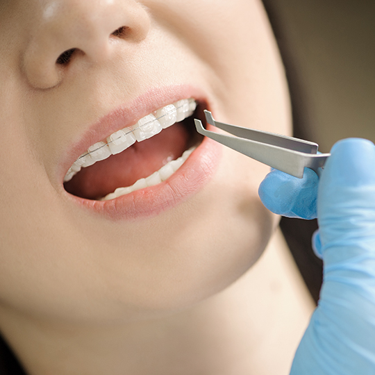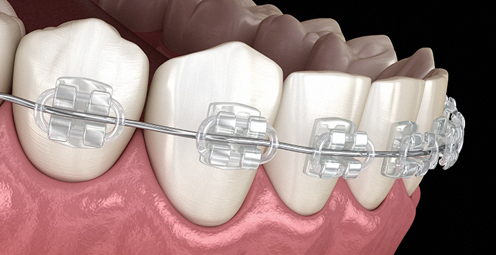 치아 색깔과 유사한 세라믹이나 투명한 레진, 혹은 금속 계열의 장치물을 부착하여
