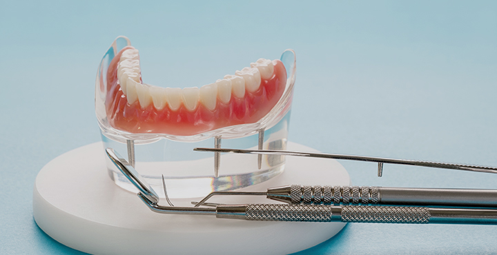 임플란트 틀니 : 다수의 치아를 상실한 경우 최소한의 임플란트로 틀니를 고정합니다. 전체 임플란트만큼 씹는 기능을